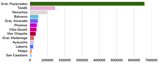 Figura 1. Distribución poblacional en partidos del sudeste bonaerense, 2022