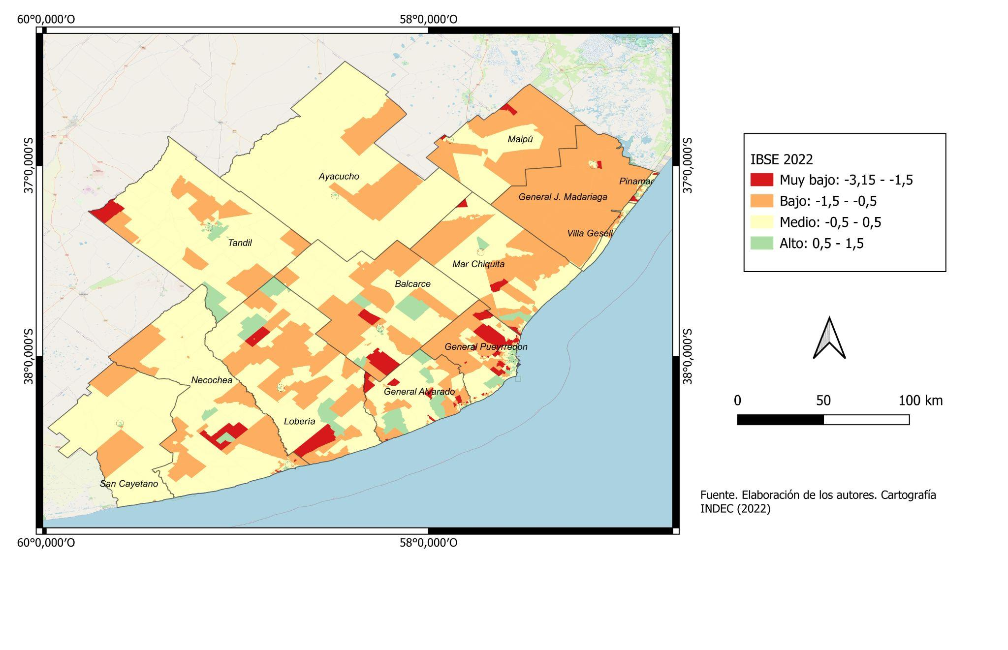 A modo de síntesis, se reconoce que aunque el IBSE tiene un comportamiento situado en los valores medios, su distribución no debe ocultar que el sudeste conforma un mosaico con situaciones diversas, donde la complejidad se acrecienta en las periferias urbanas, especialmente de General Pueyrredón. El análisis territorial del bienestar mantiene la tendencia observada mediante los datos obtenidos en el relevamiento censal de 2010, lo que da cuenta de un proceso de construcción histórica que condiciona y sostiene ciertos patrones de comportamiento socioespacial.
